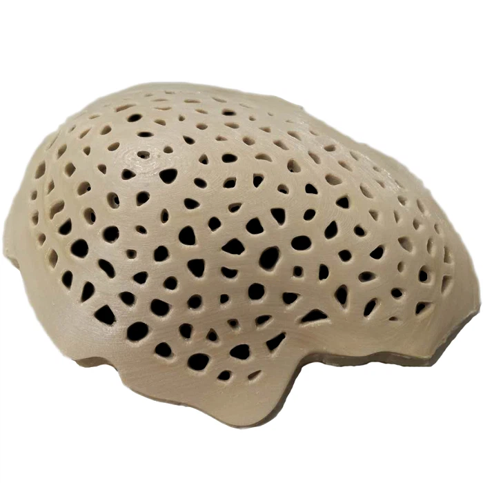 Kích thước: có chiều dày từ 3-4mm, hình dạng, kích thước, độ vòm tùy thuộc vào vùng khuyết xương sao cho khi cấy ghép đạt độ chính xác cao, phẫu thuật viên không phải chỉnh sửa
